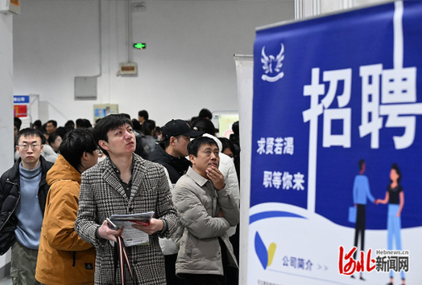 2月28日,在2026河北招才引智春季大型人才招聘会现场,求职者在了解招聘信息。 本次招聘会 吸引近200家用人单位参与 提供就业岗位8000余个 2月28日,在